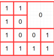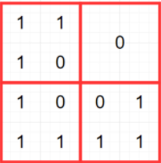 위의 방법을 0이나 1로만 채워져있다면 아래 그림의 좌상단처럼 분할을 멈추고 0의 갯수를 파악