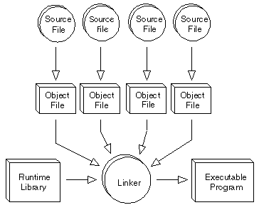 그림을 보니까 대략 목적파일과 라이브러리 파일들을 링크(더한게)한게 실행파일이라는 거 같죠? 맞습니다 ㅎㅎ