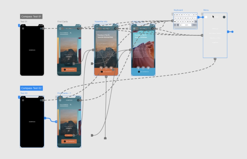 또한 위 이미지처럼 다중플로우 기능(서로 다른 화면을 연결하기 위해 와이어를 드래그할 수 있는 플로우)을 사용하여