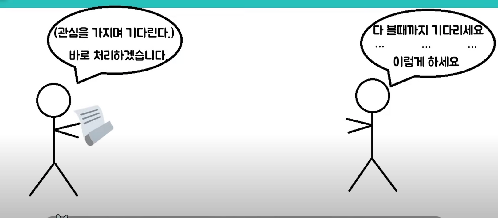 - 전화로 물어봐서 즉답을 얻는다. = 동기 요청처리