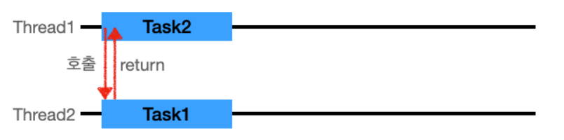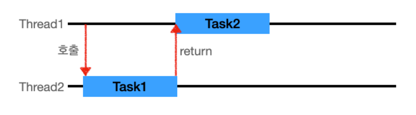 - Thread1이 작업을 시작 시키고, Task1이 끝날때까지 기다렸다 Task2를 시작한다.