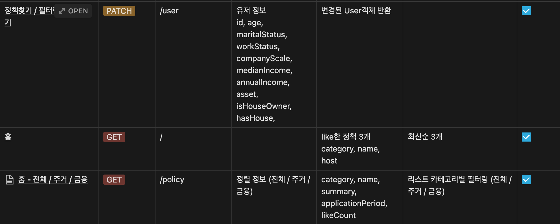 백엔드에서 api를 개발하면 안드로이드 분들께 스웨거 + 노션으로 전달드렸고 다음 사진들에서 우리 문서의 일부 모습을 볼 수 있다.