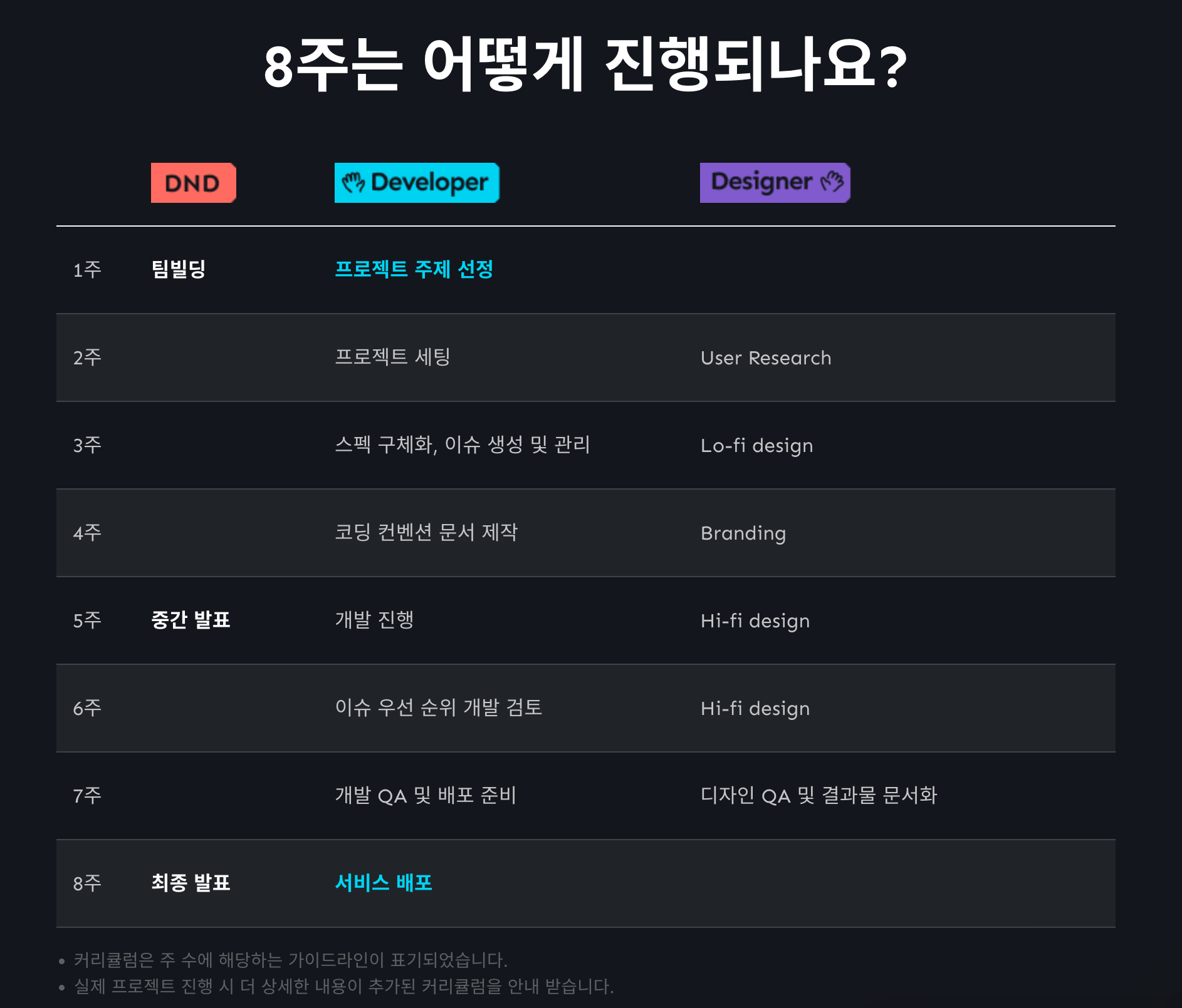 아래 사진은 DND에서의 8주간의 가이드입니다.