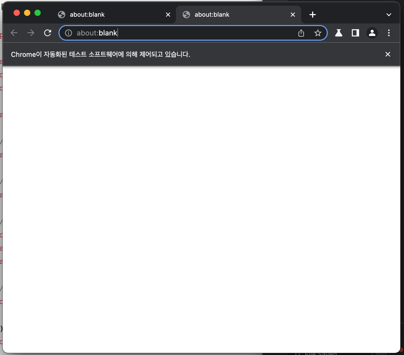 위 코드를 실행시키면 아래 이미지와 같이 Chromium브라우저가 실행돼고 새로운 page를 띄운 모습을 확인할 수 있습니다.