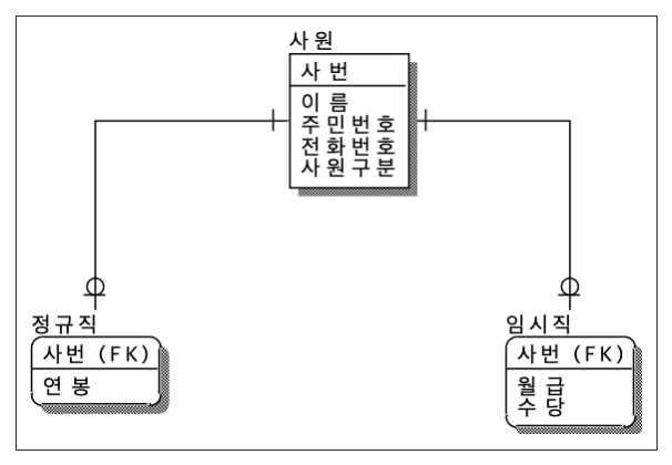 예를 들어 사원 엔티티가 있고, 회사 내에 정규직 사원과 임시직 사원이 있을 수 있습니다.