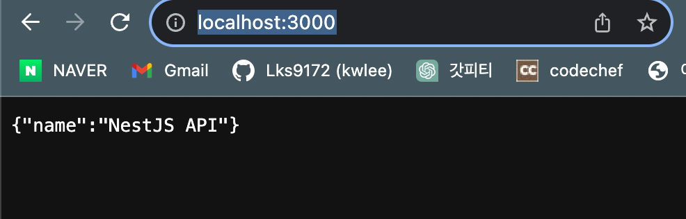 NestJS API를 실행하기 위한 서비스가 구성되었습니다.