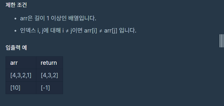 1. arr에서 제일 작은수를 제거한다.