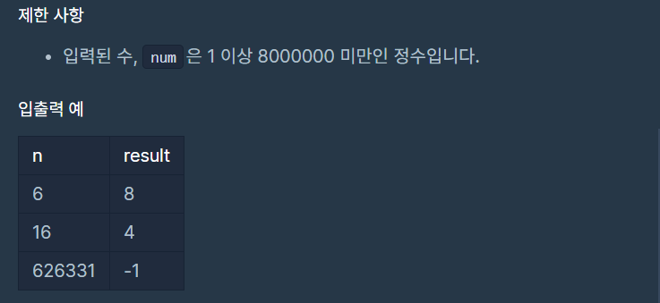 626331은 500번을 시도해도 1이 되지 못하므로 -1을 리턴해야합니다.