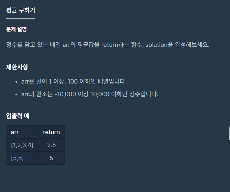 [프로그래머스] 평균 구하기 [연습문제] [python] Level1