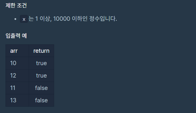 x와 x의 자릿수 합계의 나눗셈이 나누어 떨어지는지 확인하는 문제이다.