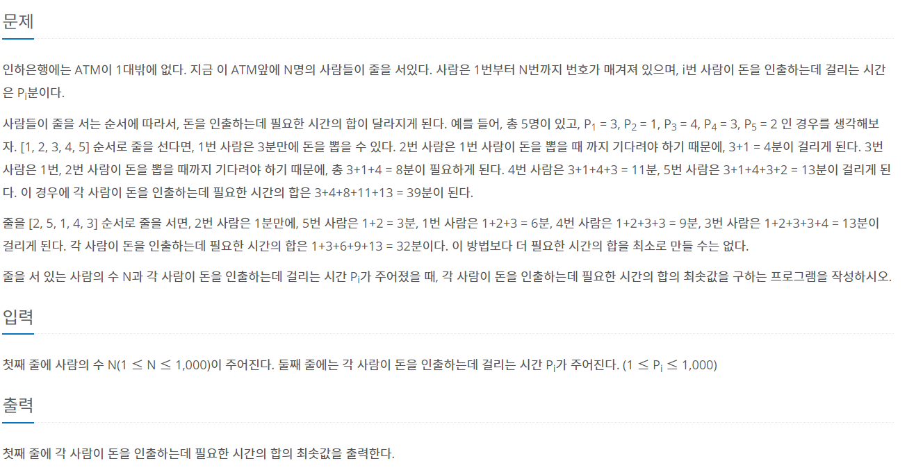 백준 11399번: ATM 문제풀이 (https://www.acmicpc.net/problem/11399)
