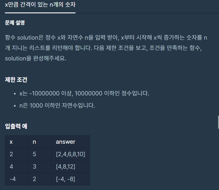 [프로그래머스] x만큼 간격이 있는 n개의 숫자 [연습문제] [python] Level1