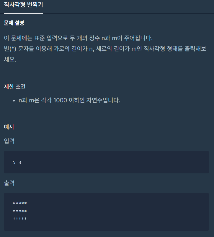 [프로그래머스] 직사각형 별찍기 [연습문제] [python] Level1
