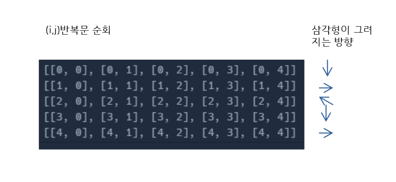 i%3의 결과에 따라서 삼각형을 채워나가는 방향이 결정됩니다!