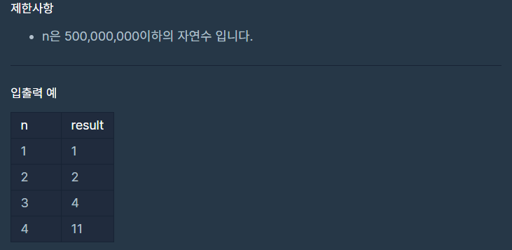 자연수 n이 매개변수로 주어질 때, n을 124 나라에서 사용하는 숫자로 바꾼 값을 return 하도록 solution 함수를 완성해 주세요.