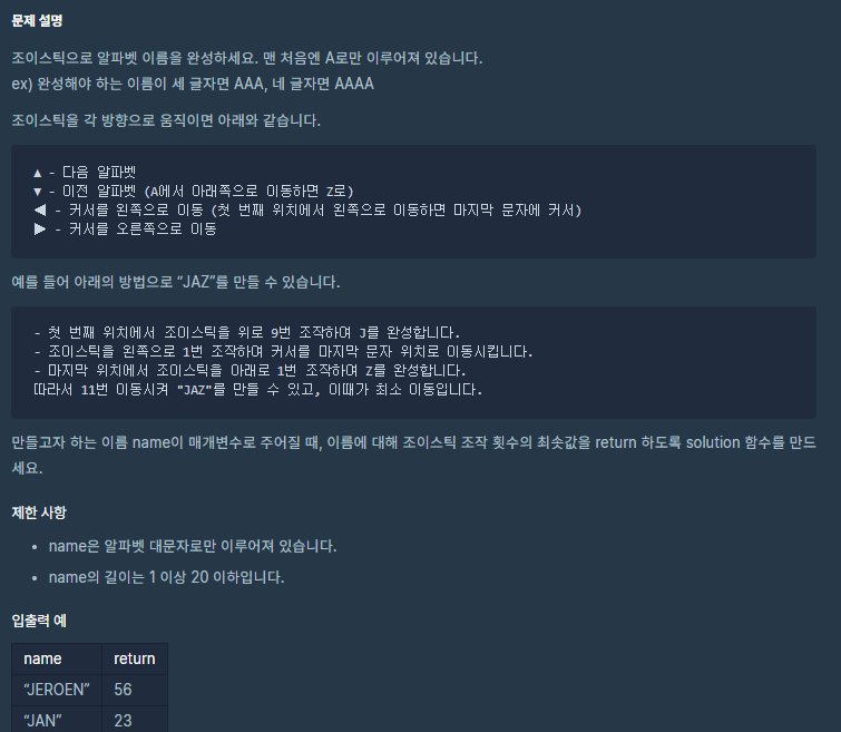 [프로그래머스] 조이스틱 [탐욕법(Greedy)] [python] Level2