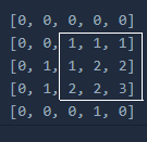 먼저 이런식으로 리스트의 위쪽과 왼쪽으로 0으로 이루어진 데이터를 한줄씩 늘린다.