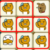같은 모양의 카카오프렌즈 블록이 2×2 형태로 4개가 붙어있을 경우 사라지면서 점수를 얻는 게임이다.
