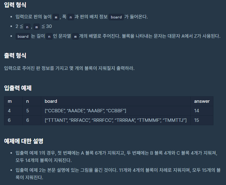 [프로그래머스] [1차] 프렌즈4블록 [2018 KAKAO BLIND RECRUITMENT] [python] Level2