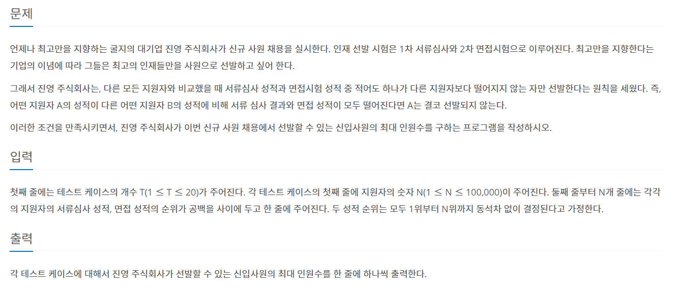 백준 1946번: 신입사원 (https://www.acmicpc.net/problem/1946)