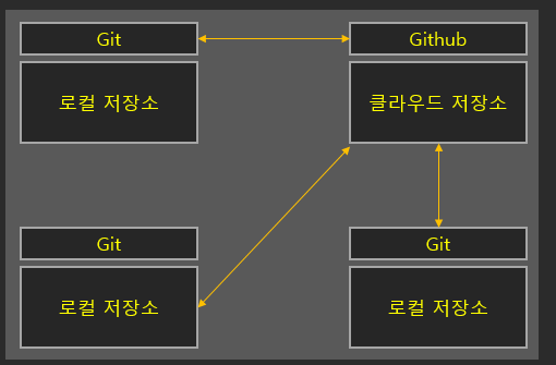 간단히 Git은 로컬에서 버전 관리 시스템을 운영하는 방식이고 Github는 저장소를 깃허브에서 제공해주는 클라우드 서버를 이용한다는 것의 차이입니다.